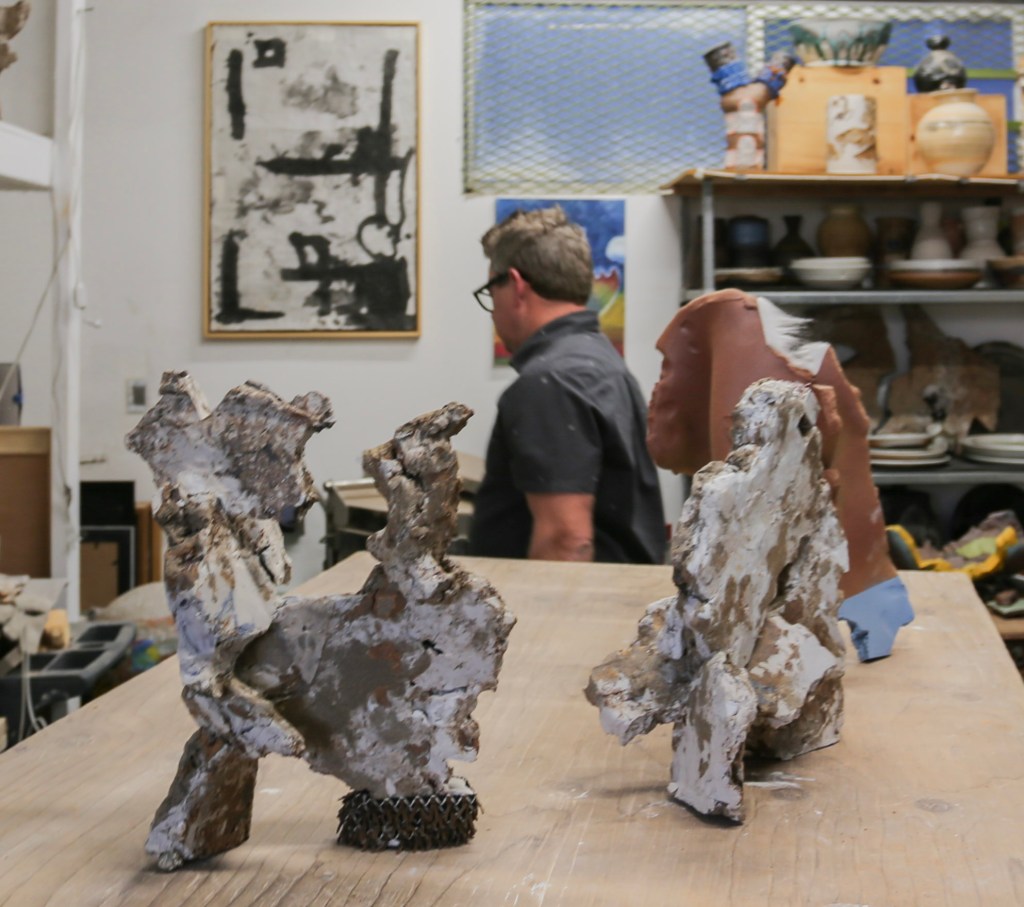 Jon’s artistic path took him to Bowling Green State University, where he earned an MFA in ceramics, before returning to California to teach and exhibit his work. Over the years, he’s garnered recognition, including the 2009 Orange County Art Grant and a solo exhibition at CSUF Grand Central Art Center.
