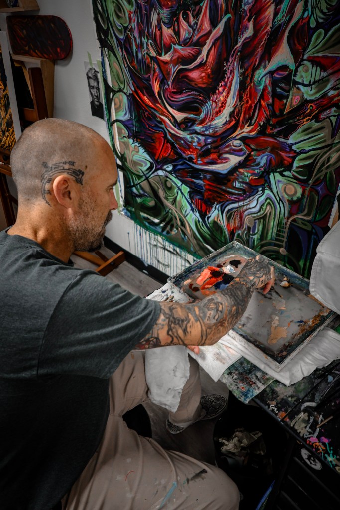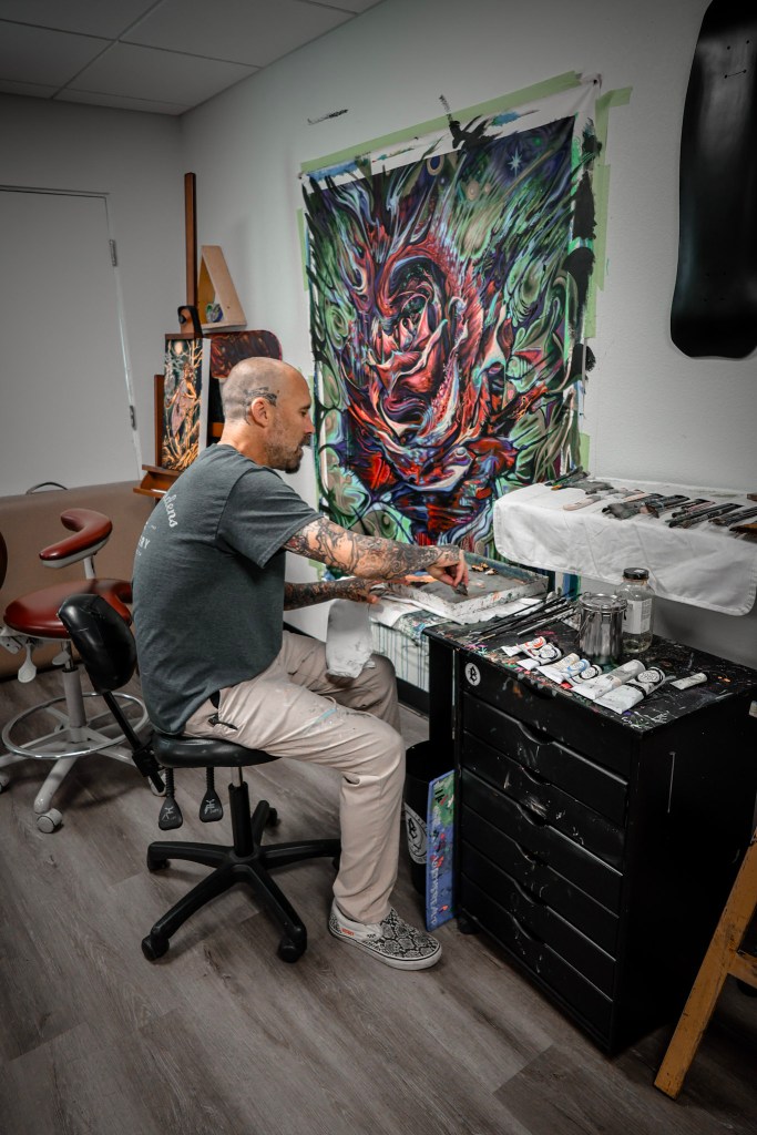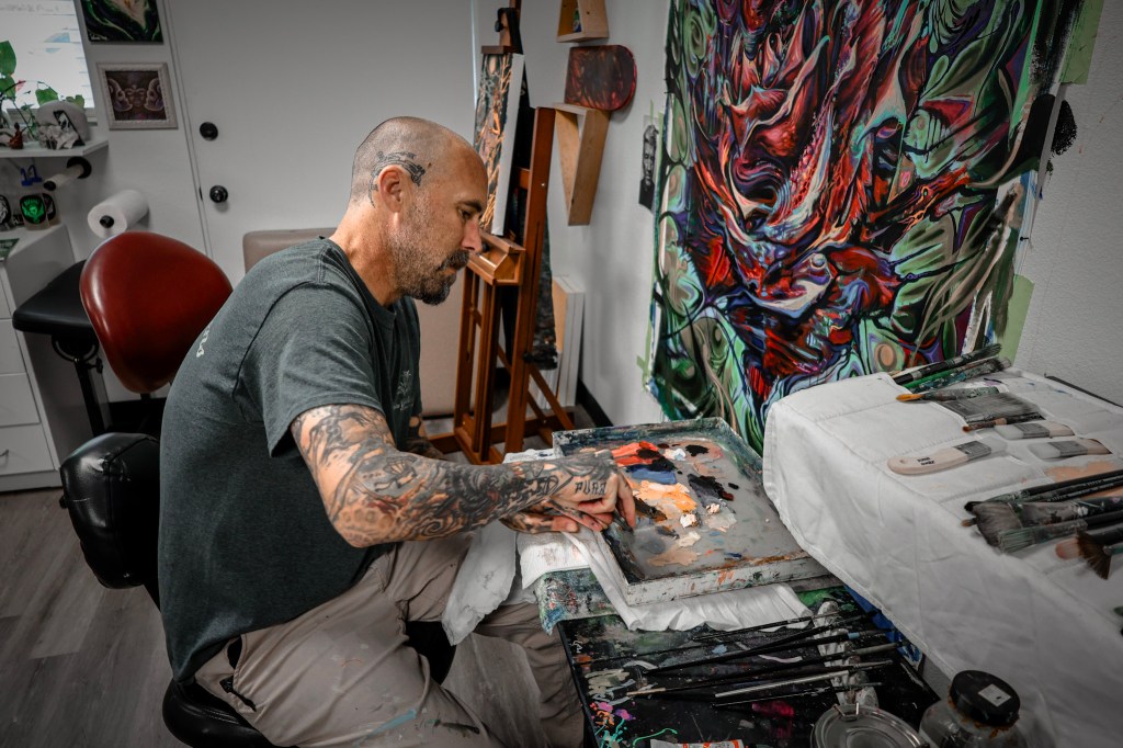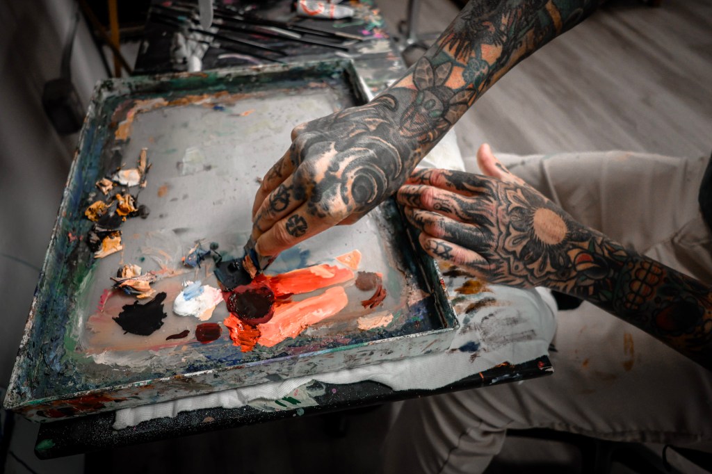 When he talks about his role as an artist, Matthew keeps coming back to intuition. He follows what feels right. Whether painting or tattooing, he doesn’t force things. “If I’m not into it,” he says, “I don’t do it.” That trust in his internal compass—refined over years of creating—has become his guide for both art and life.